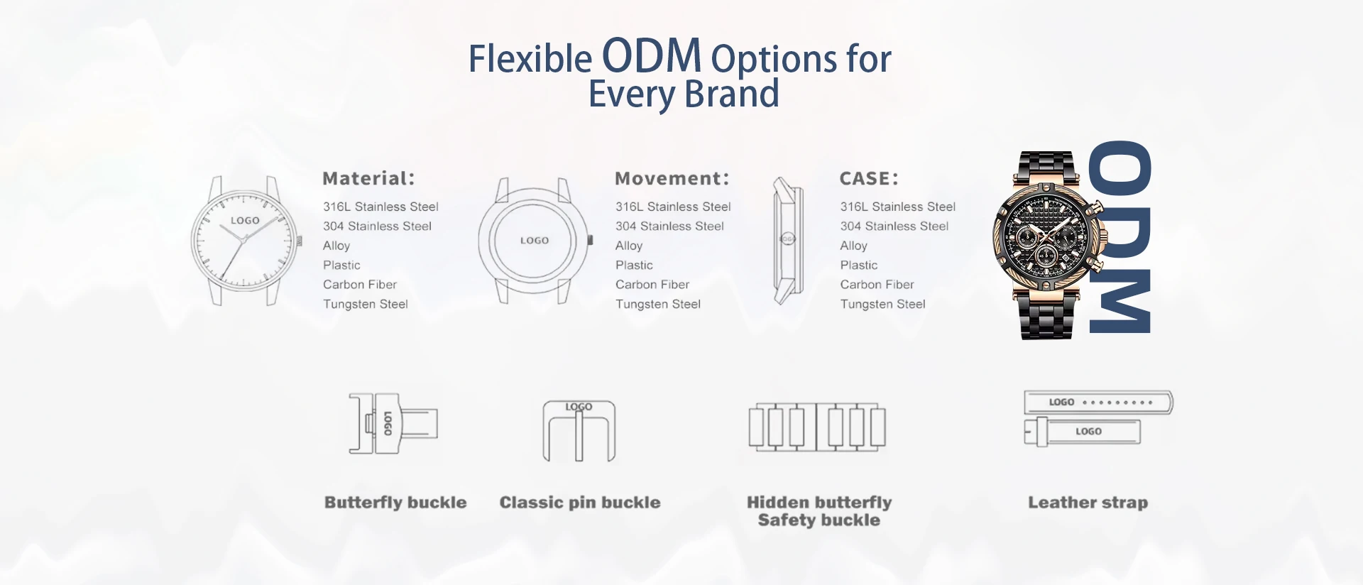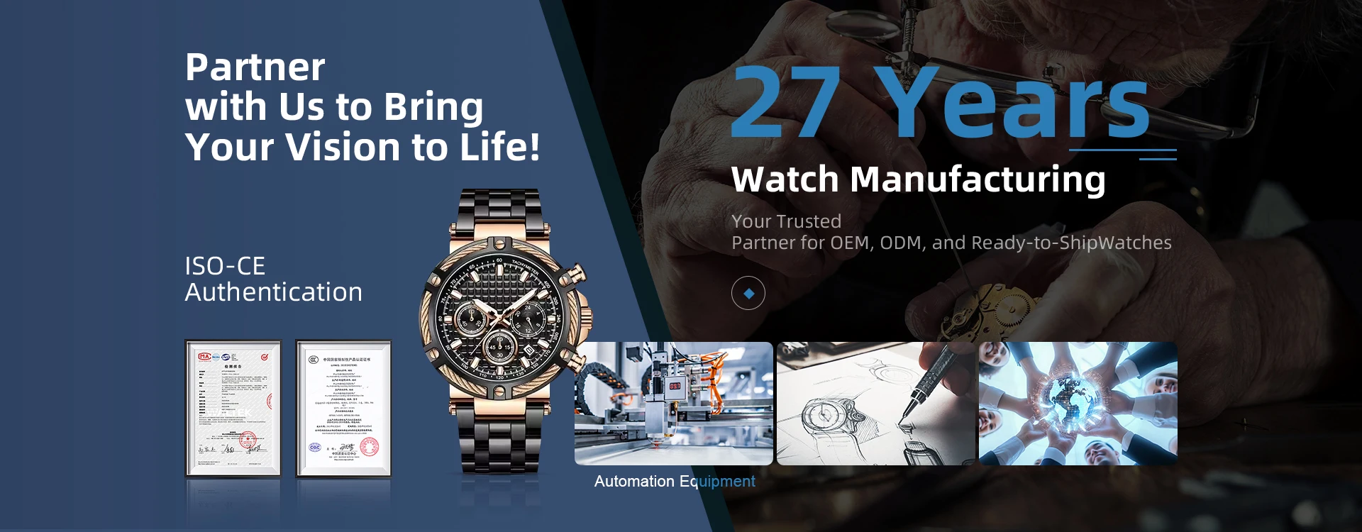 We offer one-stop services from design, development, production to quality inspection and packaging, serving well-known global watch brands. And we prioritize eco-friendly production and employee safety, adhering to environmental laws and maintaining strict safety protocols in the factory.