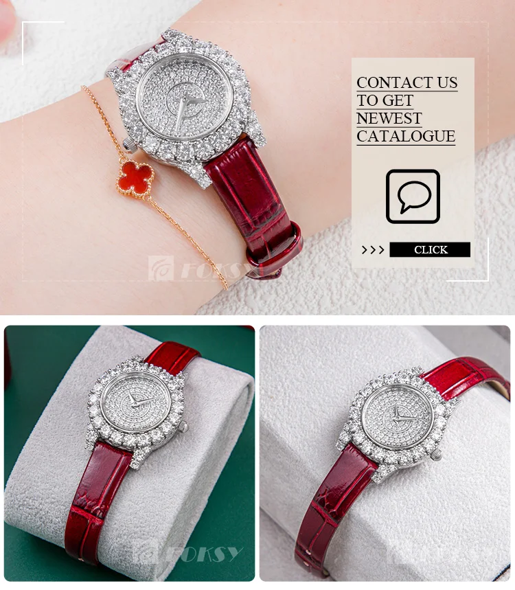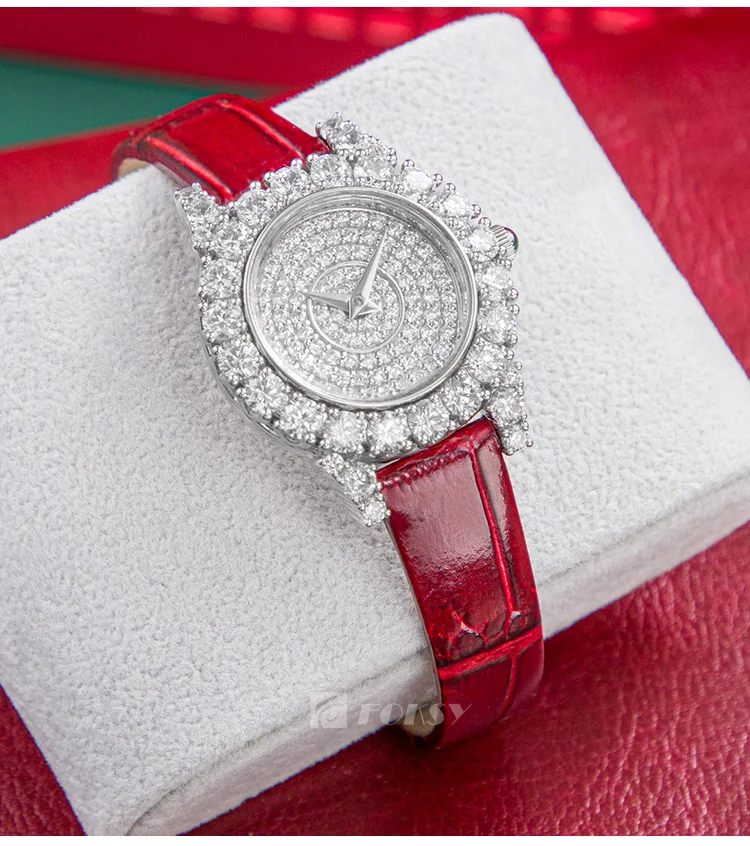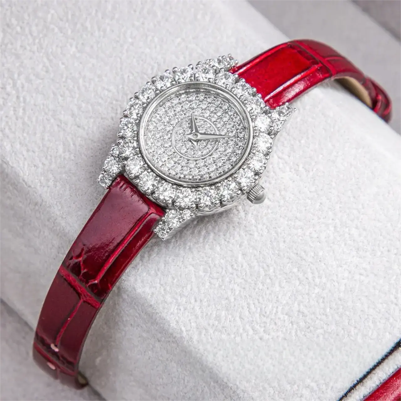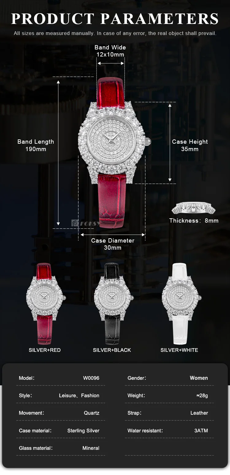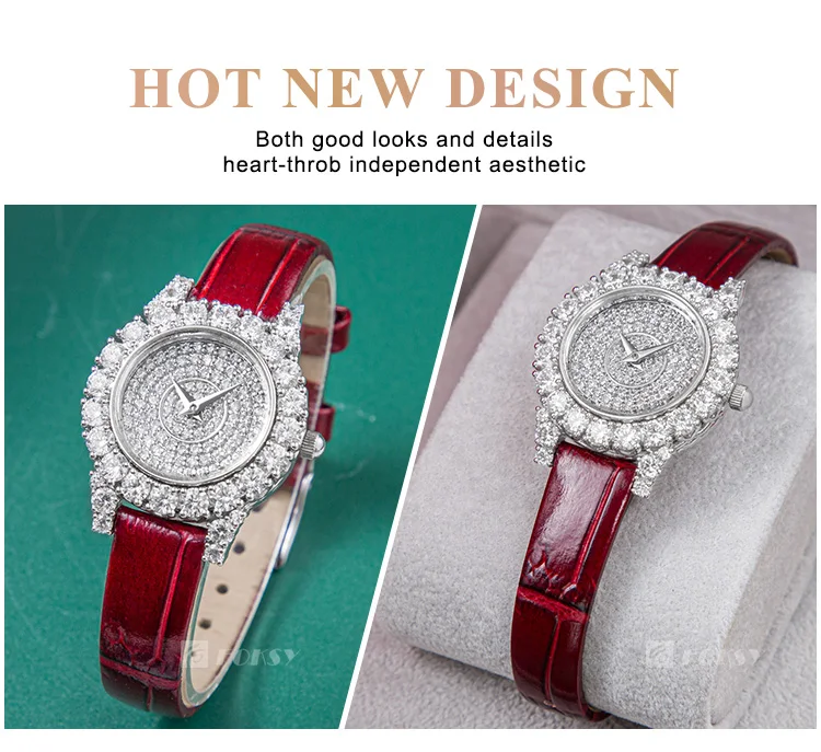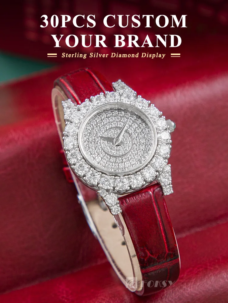 High Quality Custom Fashion Brand Wrist Watch Sterling Silver Diamond Bracelet Leather Band Custom Luxury Quartz Watch for Women