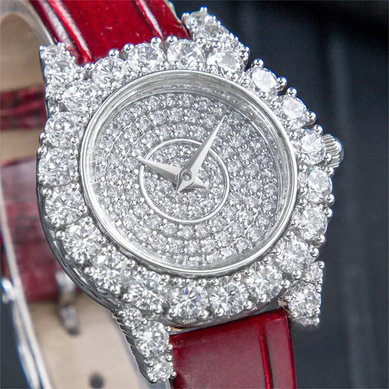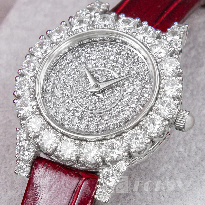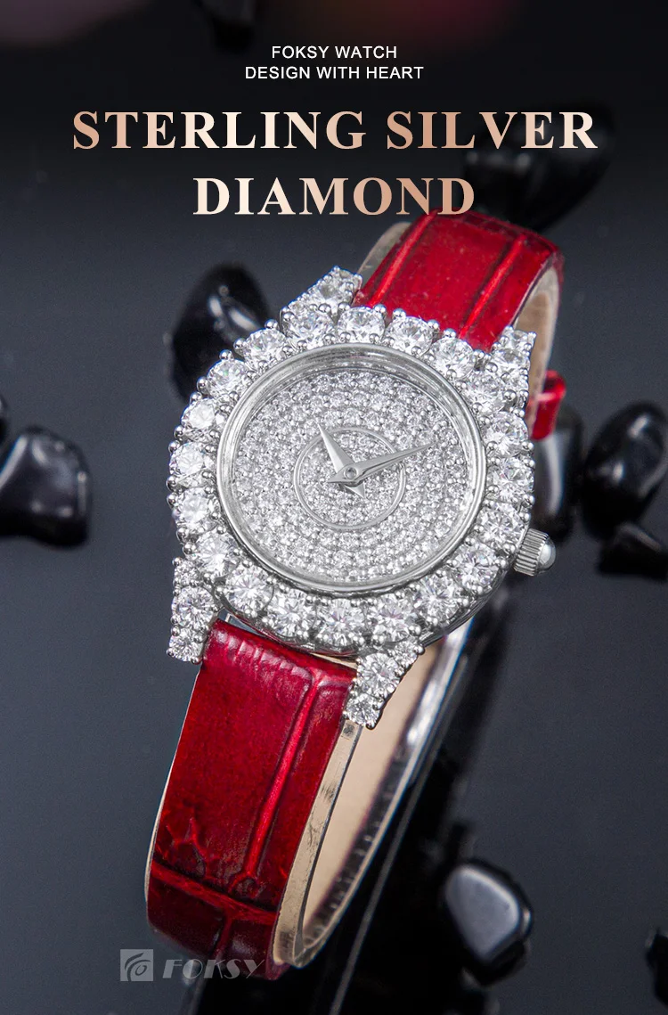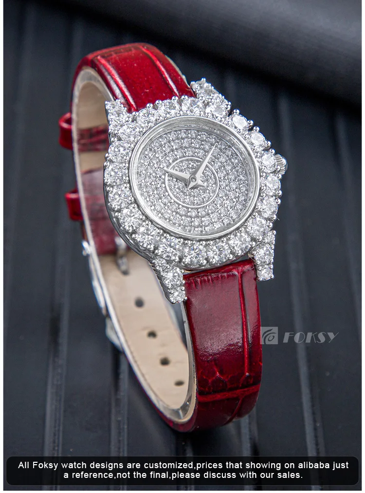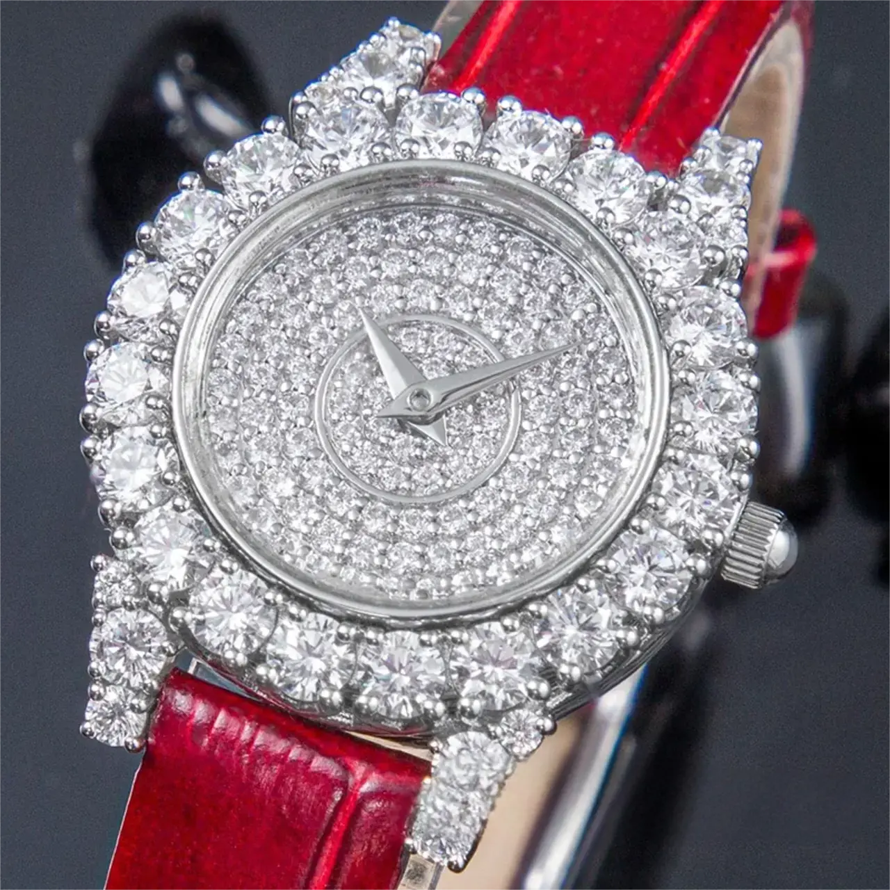 High Quality Custom Fashion Brand Wrist Watch Sterling Silver Diamond Bracelet Leather Band Custom Luxury Quartz Watch for Women