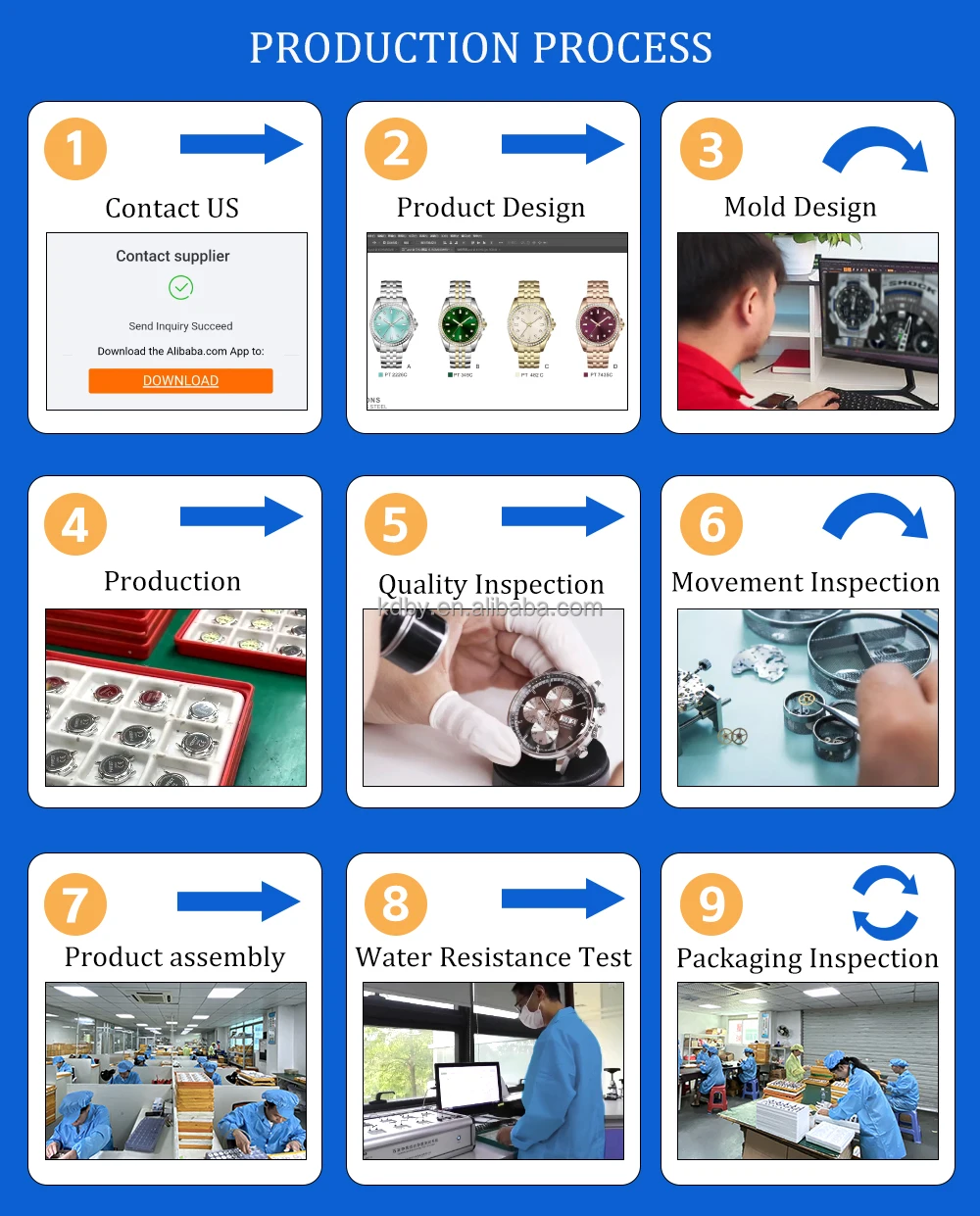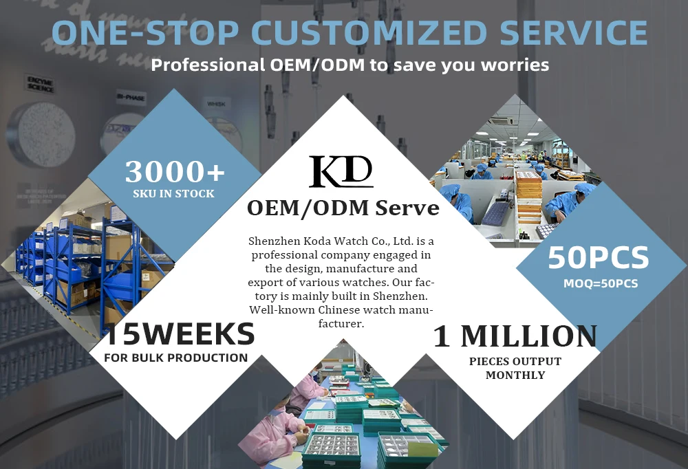 1 • Q: Could you customize our Logo watch in Low MOQ ?A: yes,OEM is ok, we have a part of existing models , It can be support 50pcs custom.we have our own assembling factory and cooperative case factory. Your are welcome to visit our factory in Shenzhen China.2 • Q :Are you offer Exw Factory price ?Yes.we have our own assembling factory and cooperative case factory. No Mid charge .3 • Q :Could you offer EU standard watch ? and reach Test ?A: We have years of experiences in exporting products to North America, Middle east and Europe.CE ,ROHS Reach Report .