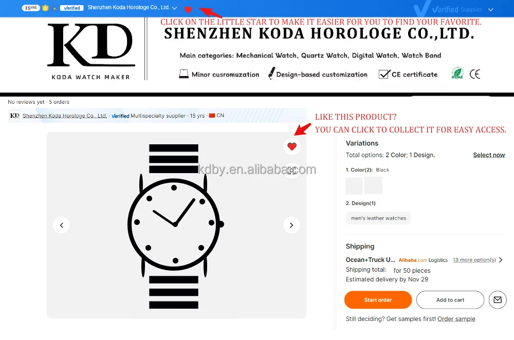 1 • Q: Could you customize our Logo watch in Low MOQ ?A: yes,OEM is ok, we have a part of existing models , It can be support 50pcs custom.we have our own assembling factory and cooperative case factory. Your are welcome to visit our factory in Shenzhen China.2 • Q :Are you offer Exw Factory price ?Yes.we have our own assembling factory and cooperative case factory. No Mid charge .3 • Q :Could you offer EU standard watch ? and reach Test ?A: We have years of experiences in exporting products to North America, Middle east and Europe.CE ,ROHS Reach Report .