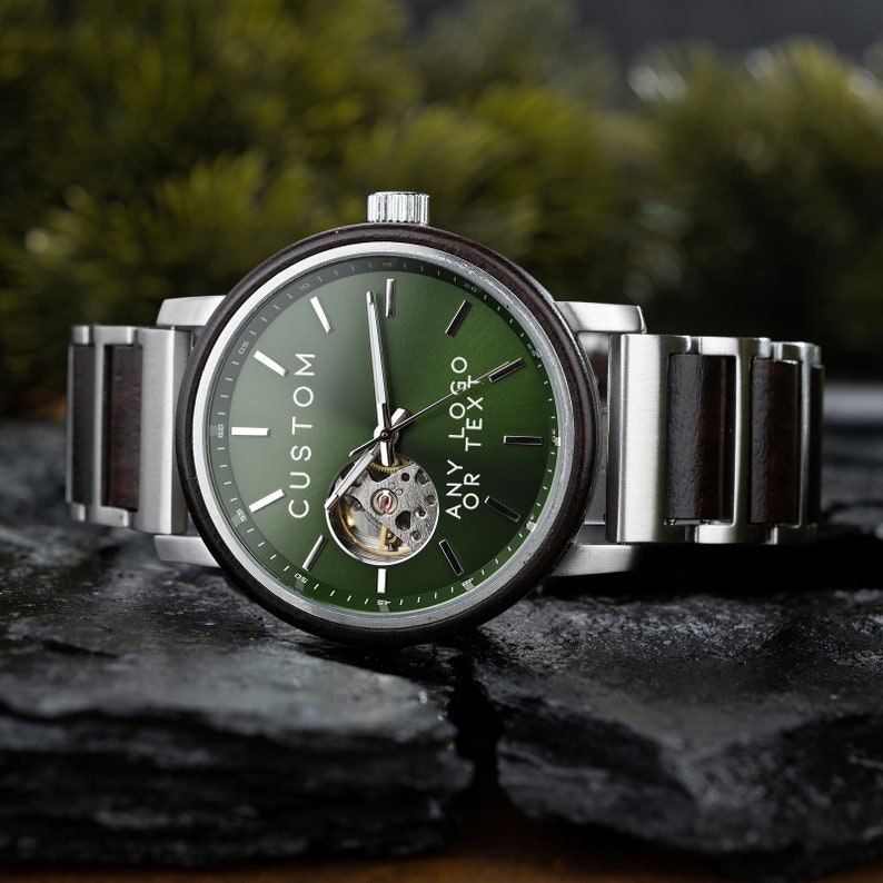 Wood Watch for Him - Green Dial Watch - Automatic Watch - No Battery Needed Mechanical Watch